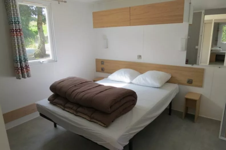 Le mobil-home LIFE offre de très beaux volumes dans la pièce de vie, les 2 chambres et la salle de bain.