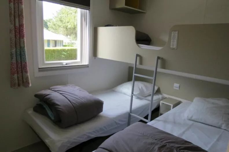 - 1 chambre avec 3 lits de 80 cm dont un lit en hauteur et un lit gigogne au sol, possibilité de rapprocher les 2 lits au sol pour faire un lit double de 160cm.